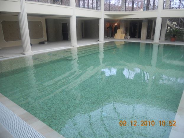 Piscina cu luciu de apa. Placare cu mozaic de sticla. Hidroizolatie, adezi